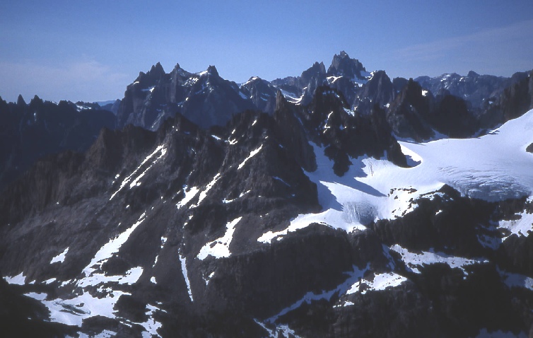The easy col leads down to the Baroness on the left (out of picture).
