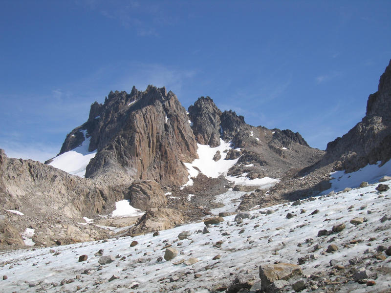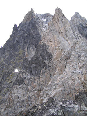 The N ridge of Valhalla from col (actually to Blind Pew - not climbed!). [D.Bone]