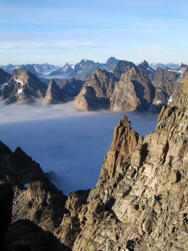 Evening over the next island Quvnerit from the Blind Pew couloir. [D.Bone]