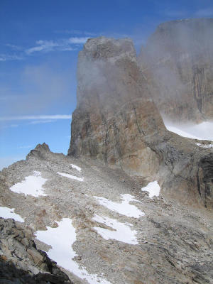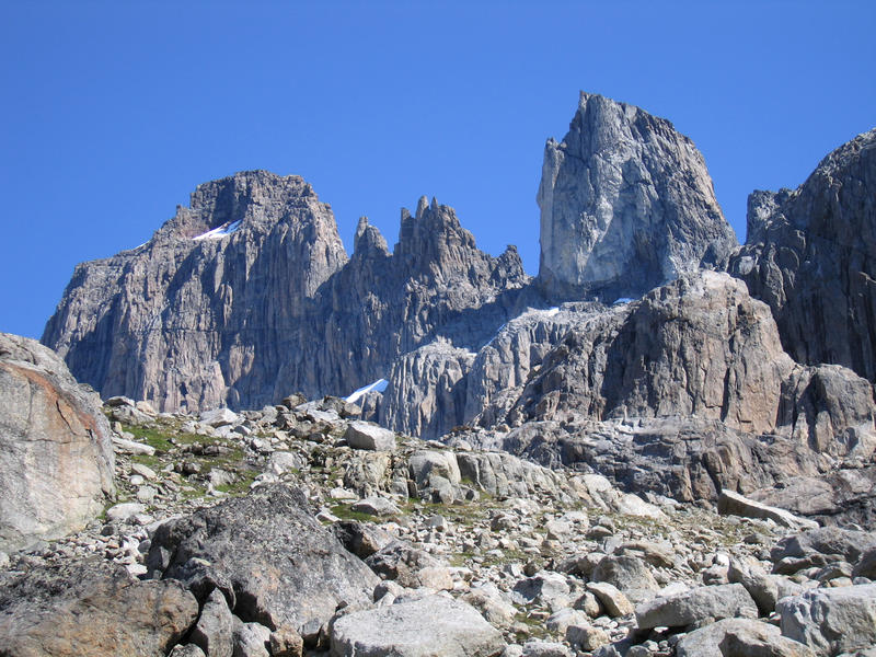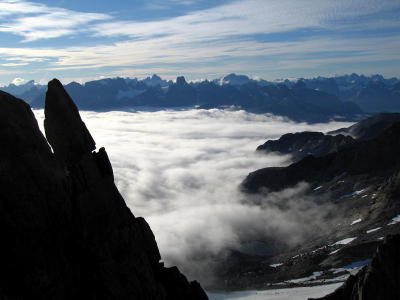Odin's Tooth (1150m ?) from the South with Valhalla behind. [D.Bone]