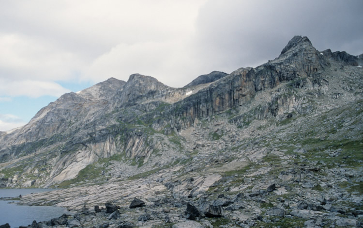 The barrier ridge above the col lake.