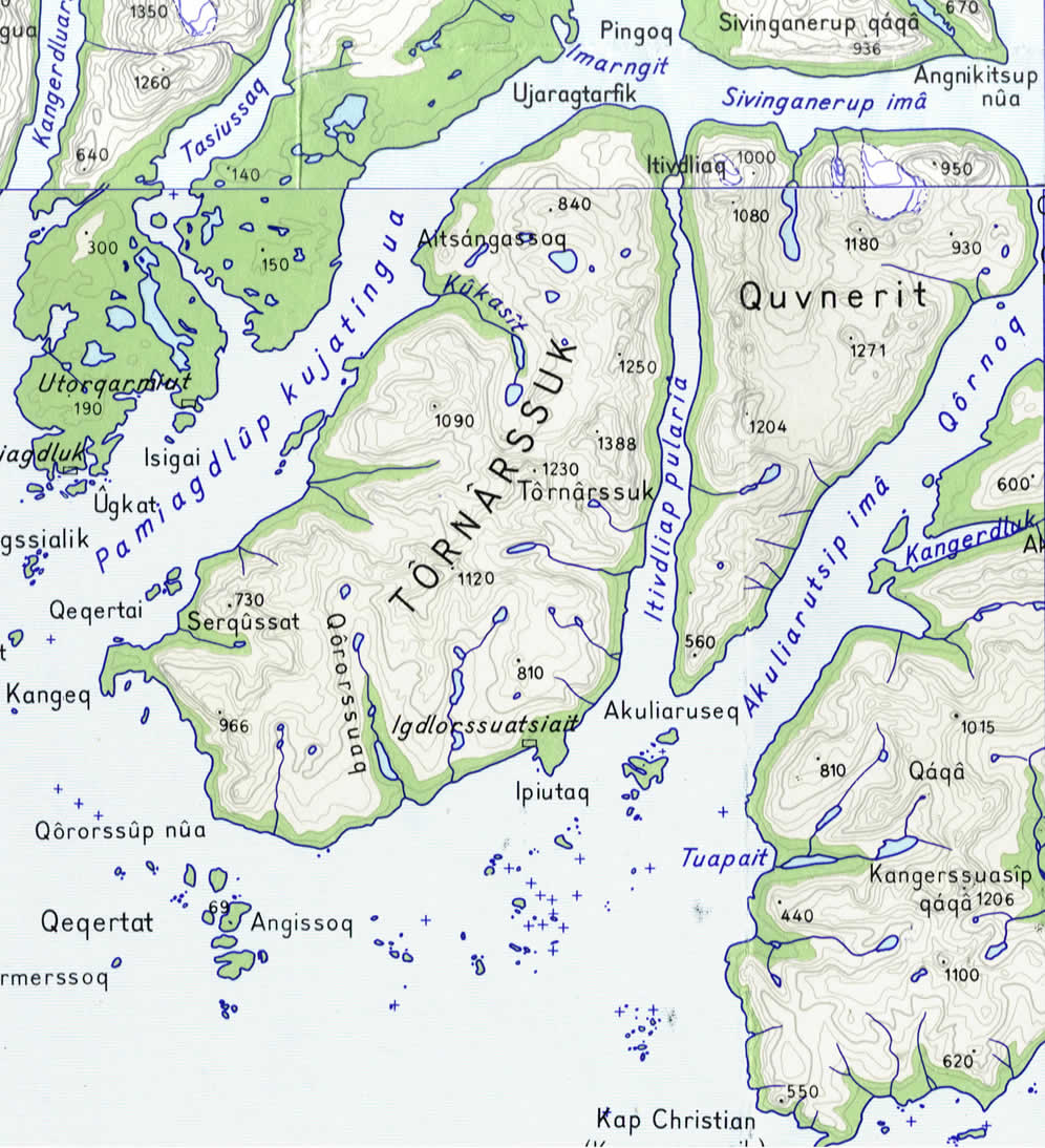 Tornarssuk Island [1:250,000 Saga Maps] Actual base: Mouth of the Kukasit valley.